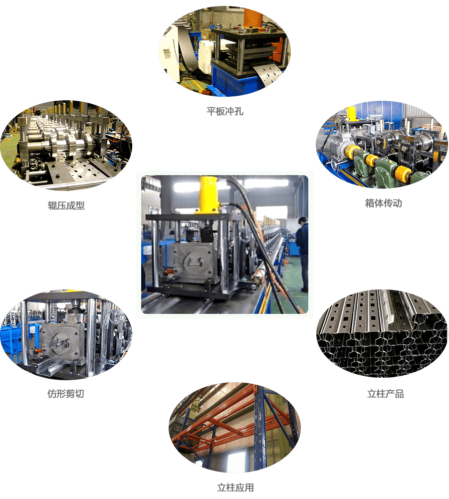 開(kāi)卷→引料校平→平板沖孔→輥壓成型→仿形剪切→成品出料