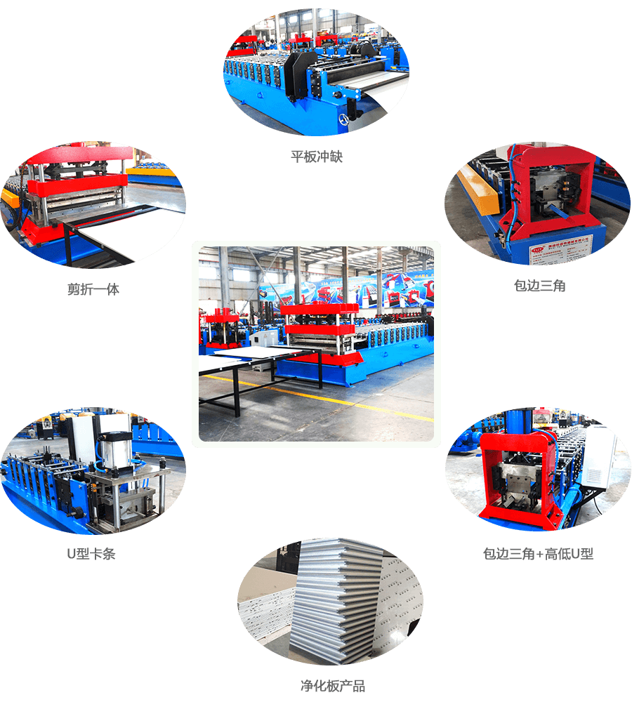 開卷→引料覆膜→平板沖缺口→輥壓成型→切斷翻邊→出料