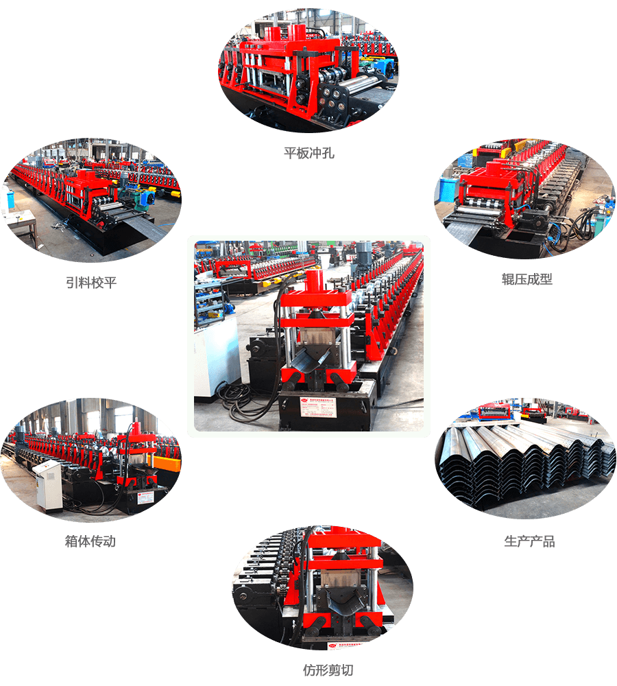 被動開卷 → 導向進料→ 平板沖孔→輥壓成型→仿型剪切 →出料臺