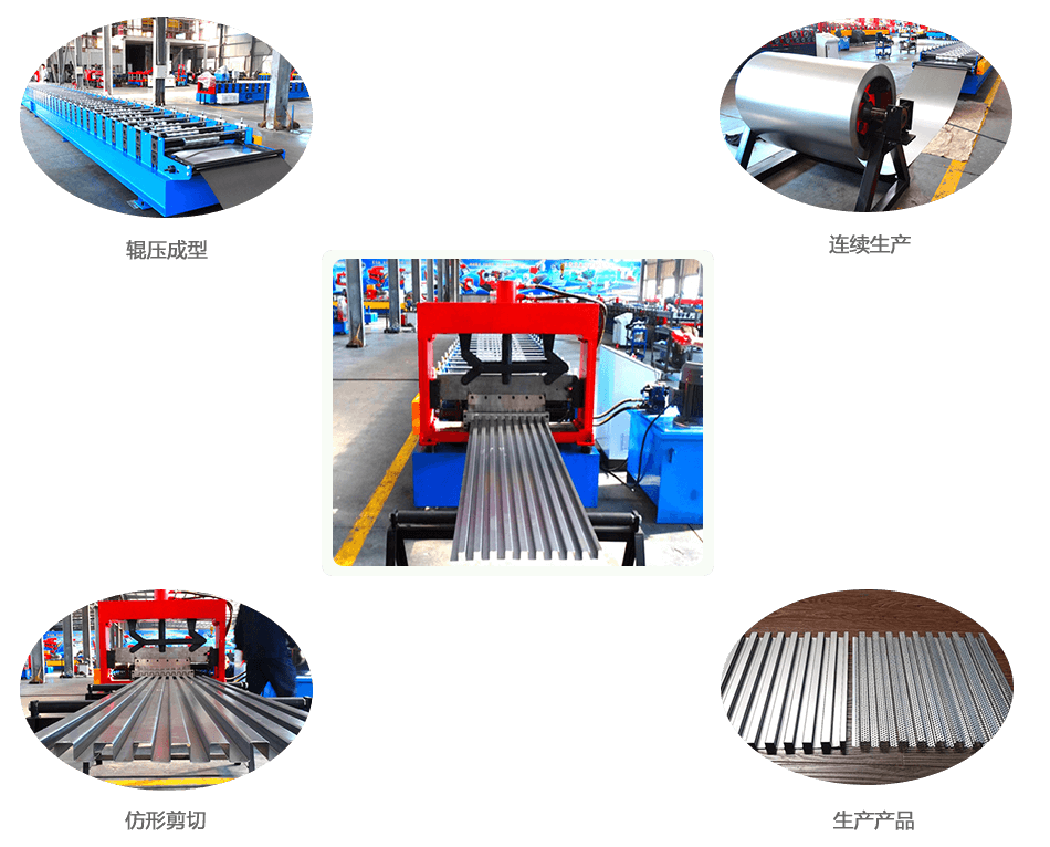 開卷→進料導向→輥壓成型→切斷→托料出板